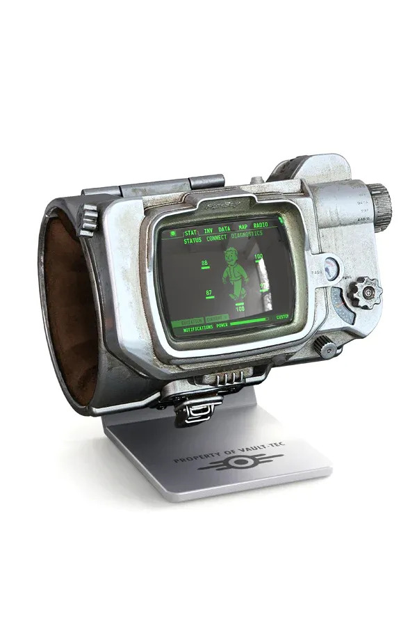 Компания «Bethesda Softworks» создала уникальный мерч к выходу сериала «Fallout» — специальную модель Пип-Боя. Это устройство можно предзаказать за $200 на официальном сайте компании. Пип-Бой в реальности будет точной копией того, что носят персонажи в сериале «Фоллаут». Он изготовлен из металла методом литья и вручную окрашен для создания эффекта старины. Устройство оснащено TFT LCD дисплеем и батареей, которую можно заряжать через USB Type-C. В Пип-Бое предустановлены несколько анимированных заставок, а также функции часов и будильника.